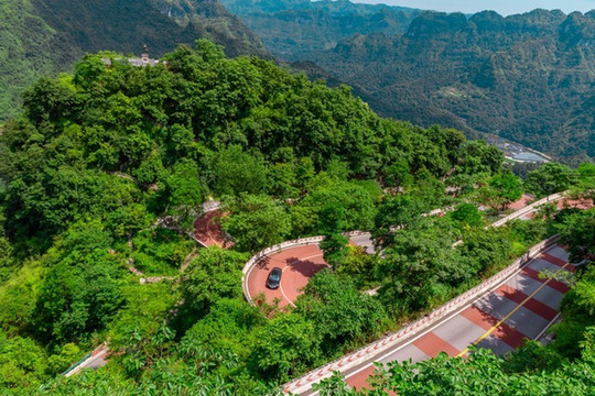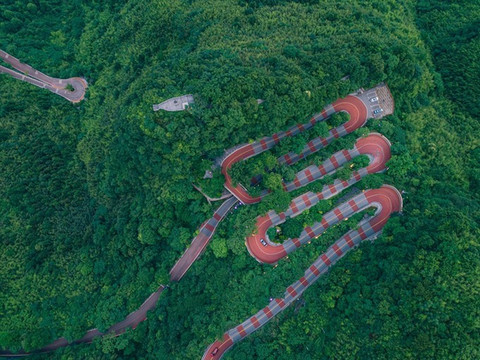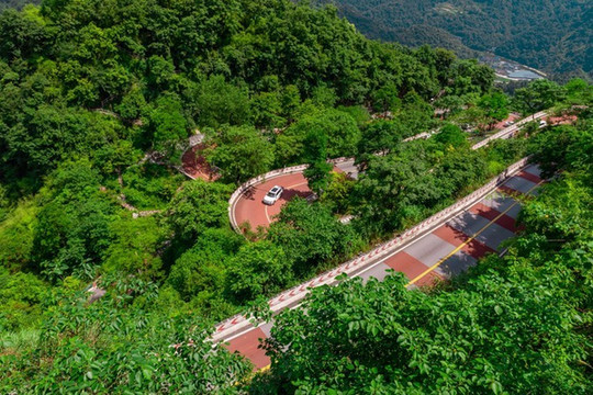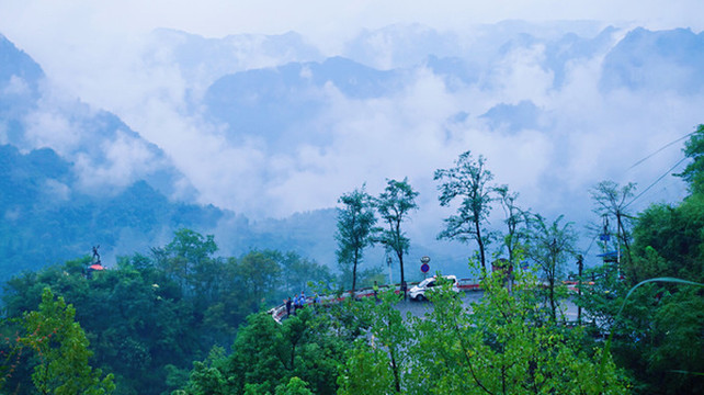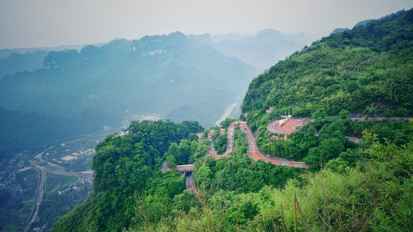 下山方向前行一两百米有个观景台,那里是个不错的云雾天气拍云海或者云雾缭绕场景的位置,还可以看到盘山公路弯道,很是漂亮!