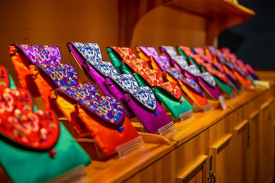 从大桥出来是一个苗家特产的展示厅,精美的服装,精致的刺绣,苗鼓,蜡染......遇上喜欢的也可以买下来带回家。