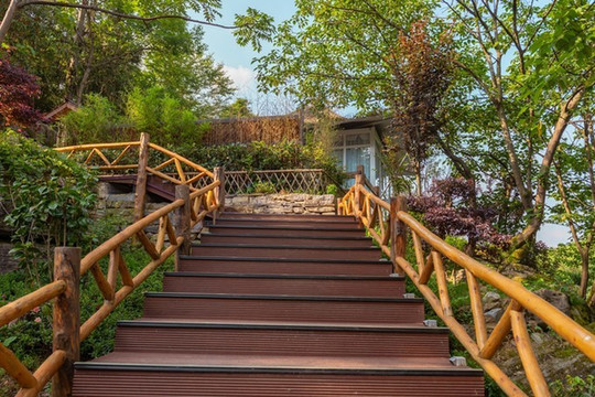 刚匆匆走过天桥仙居觉得环境还不错,午休之后不准备走远,先逛一逛整个民宿,了解一下也不错哒。整个 仙居 倚山而建,木质栈道被丛林掩映,行走其中很是凉快。