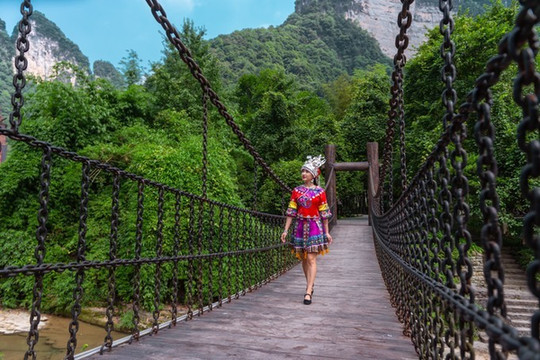 悬索桥中,看崇山峻岭千峡万壑,赏矮寨纯粹村落田园风光!