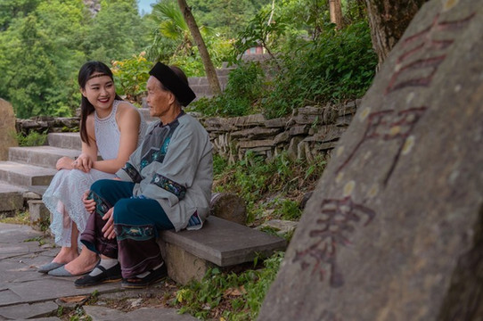 路边卖东西的苗家阿婆,听她讲述过去的故事,原来这吉斗苗寨曾经也是电视剧《婉君》的取景地之一!