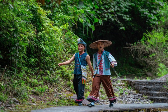 这里现在居住着八十多户人家,他们以歌为媒,自由恋爱。女人喜戴银饰,穿无领绣花衣;男人爱结绑腿,吹木叶。