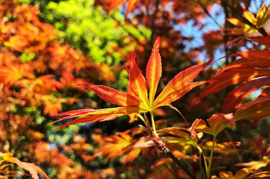 火红的枫叶在阳光的照耀下绚烂的耀眼,晨曦中,仿佛是小镇向我们伸出手掌,欢迎我们的到来,微风中带着和煦温暖。