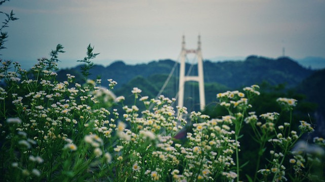 仙居 里树荫多,大桥在绿叶的摆动下若隐若现,如果想要看清大桥的全貌,泳池方向是一个不错的选择,遮挡物相对少一些,而且还有一大片白色的小野花花海,挺漂亮的。