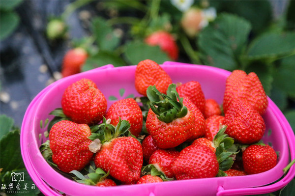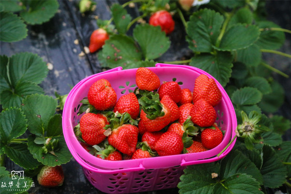 将草莓摘满一箩筐的感觉真好。