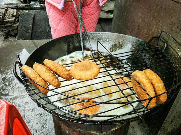 向东街上还有新鲜现炸的糁子粑、油炸粑、杯子糕等,