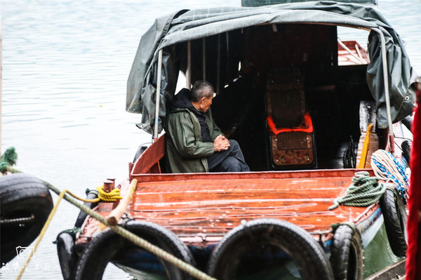踏上游船游览资江,
