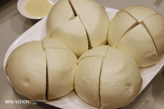 关于主食,特别要推荐现蒸出来的手工大馒头,看似有点像山东大馒头,但面更细,蜂窝眼更小,吃起来还有种蛋糕的甜甜的味道,在沾一沾小盘内的炼乳,顿时让你对吃馒头这件事由喜欢变成钟爱!一个馒头四瓣,停不下来的节奏……