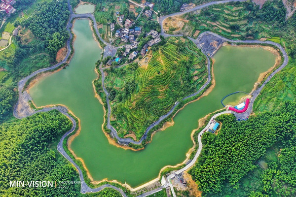 有人说这个月亮湖,像牛头,这个视角看确实很像!呼应“牛天岭”这个名字,展示了向家村无私奉献、吃苦耐劳、奋蹄前行的“拓荒牛”精神。小岛上种的满是可认领的樱花树,想象在三月樱花盛开时,一定非常美!