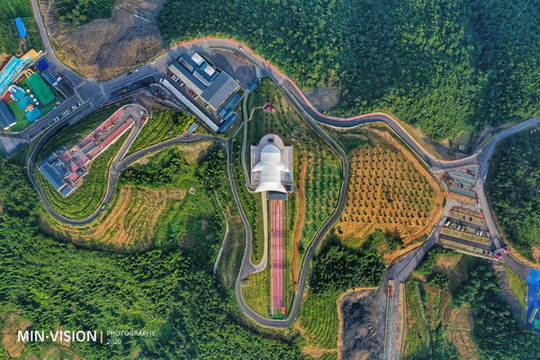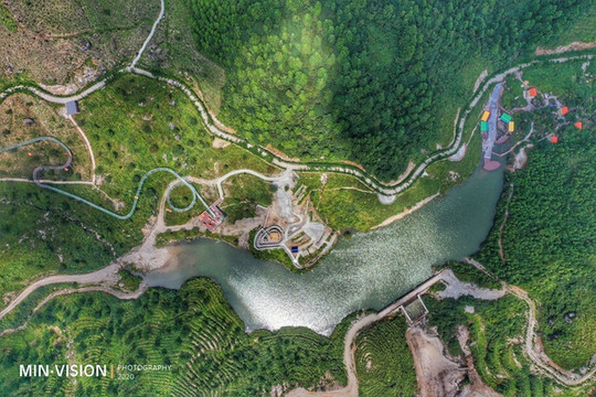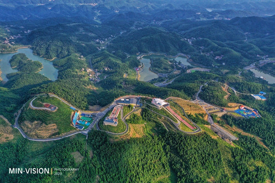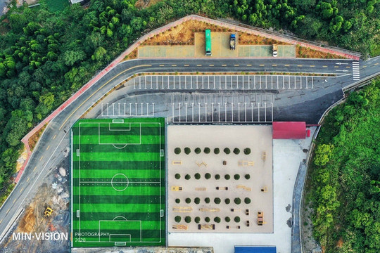 从小就喜爱足球的我,在航拍时看到这样一块足球场地,让我兴奋不已,急速飞到上空查看该区域。原来向家村拓展中心,这里拥有青少年 A、B、C、D 4个障碍赛场及沙池、树池等场地设施,包括高空项目、半高空项目、场地项目、自然环境利用的主题项目等。这个拓展中心是我所见当前理念最时尚、设备最先进、项目最齐全、玩得令人心跳的户外大本营。