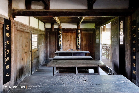 二楼为读书楼,正中三间为讲堂,讲堂的桌凳仍摆得整整齐齐,两梢间为书房,魏源就是在这栋楼上度过了他的童年和少年时期。“偶尔下楼,家犬追咬”和“读书入了迷,粽子蘸墨吃”的故事就发生在这座楼上。从读书用过的桌椅及遗留的手稿、书籍等物品,我们可以感知魏源在不同时期的生活场景和社会背景。
