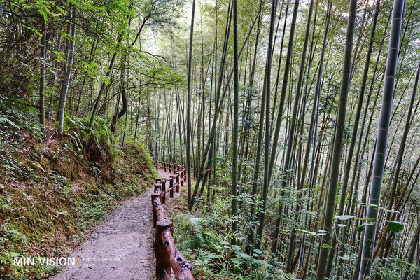 要想看到壮观的瀑布群,需要登山,一路鹅卵石铺设的地面起伏有序,台阶很少,护栏架设的也很安全,让人登山会觉得很轻松,还能边走边欣赏到路边的竹海风景,美妙绝伦,令人拍案叫绝!