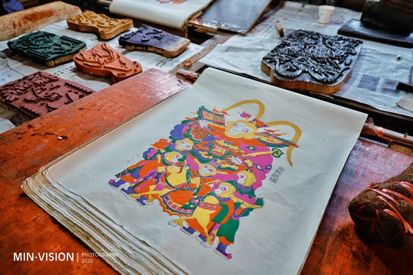 这一次走访了“滩头木板年画”和“滩头手工炒纸技艺”。滩头年画是湖南省唯一的手工木版水印年画,产地在湖南省宝庆(现在为邵阳)隆回滩头镇。隆回滩头年画形成于唐朝李世民时代,至今已有1300多年历史。《老鼠娶亲》、《秦叔宝.尉迟恭》、《和气致祥》是滩头年画中的经典之作。