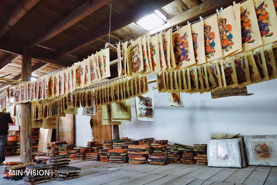 说完滩头年画,自然要追源用纸取自何处?!我想这也是多数人想听到的待续部分……2014年12月,湖南省隆回县滩头手工抄纸技艺被列入第四批国家级非物质文化遗产代表性项目名录,传承人为该镇桃林村人李志军,他是“滩头手工古法抄纸“的第46代传承人。他的传习所也已经在原址重新改建,制作间更加安全、规范。