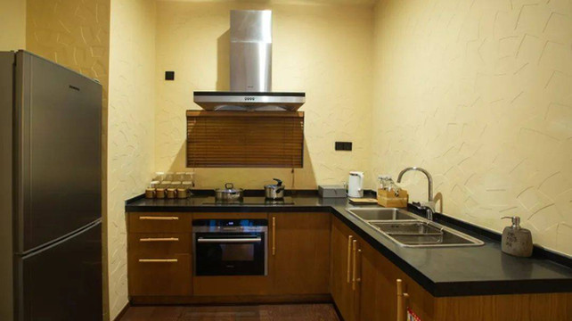 别墅是上下三层结构的,采用彼时流行的巴厘岛风格建造,色调深邃,刻意保留一些粗粝痕迹,却历久弥新。入户层是面积超大的客厅,配有全套设备的厨房和餐桌,一侧设客用洗手间,方便入户后随时使用。