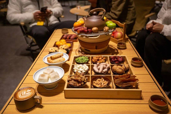 在这里可以点一些饮品甜点围桌聊天,也可以了解郡安里特色的马拉松文化与相关赛事的信息。有球赛时,这里也是球迷们同乐的空间,一起看着大屏幕里的绿茵赛事,为喜欢的球队呐喊助威,才是人生乐事!当然,我们选在了现在最时髦的“围炉煮茶”,一群好友,对酒当歌,快意人生。