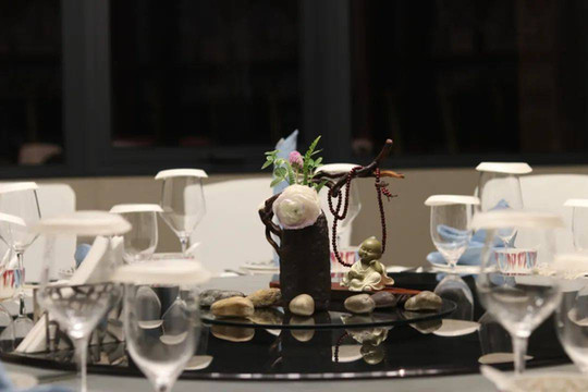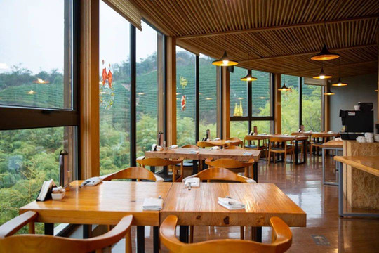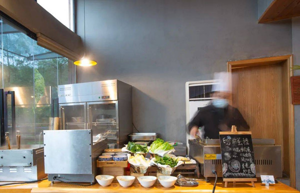 餐厅被白茶山包围着,需要从一条小径拾阶而上,竟让我产生一种强烈的遁世之感。以石与木相结合,让这里充满着原始的力量感,又仿佛穿越到了北欧。二层极目远眺的无敌景观,与一层户外餐区巧妙的私密感碰撞出截然不同的用餐氛围。