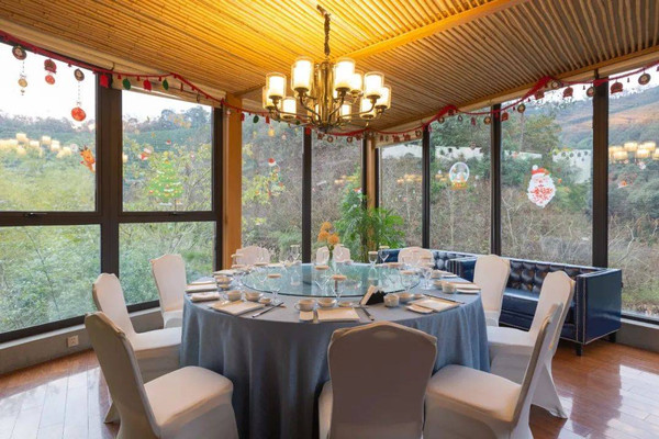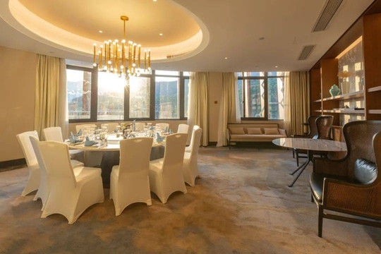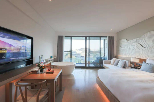 会议中心作为整个郡安里度假区里最大的单体建筑,功能也是十分强大,除了有大型的多功能厅及会议室外,还设有配套的星级标准会议客房。除了高规格的中餐厅,还配有VIP会议室、KTV包间、雪茄吧等设施可以说各种会议需求都能完美契合。我们入住期间,就有莫干山民宿大会在此举行,其功能型可见一斑。