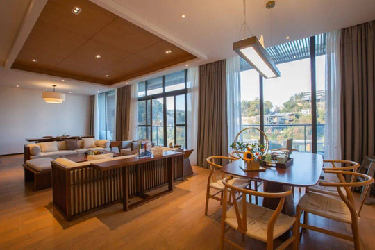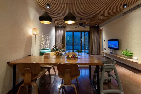 以原木色为基调色,用简单的线条和以山、花等本地元素勾勒的装饰摆设,衬托出一个清新简约的居住空间,确实是能让人完全放松下来的,也十分适合大家庭入住,必享其乐融融的氛围。