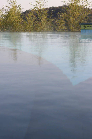 今天的天气还是相当寒冷的,气温低于了0度,在山中更显得清冷。但露天泳池的水温保持在30度以上,下午有暖阳时水温甚至能上升到33度,水面上冒着蒸腾的水雾,竟让我有种在温泉池畔的错觉。