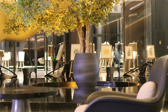 桃尖中餐厅位于四层,电梯门甫一打开,是一个中国风十分浓郁的欢迎前台。