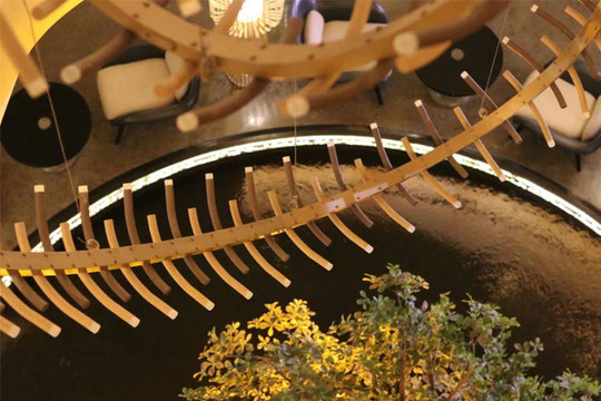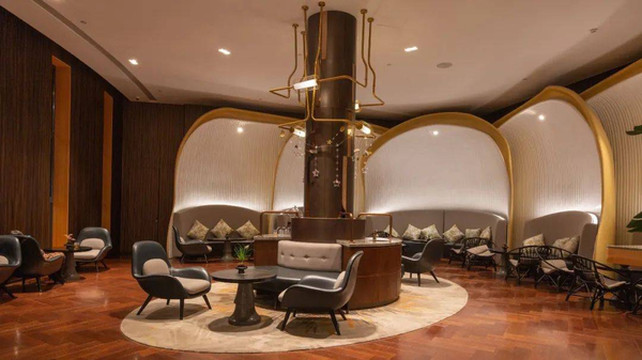 会议中心的扶梯与水景艺术中庭相当出彩,搭配整个建筑以圆形为基调的层叠错落,让这个会议中心多了几分艺术之美,也成为不少游客的打卡之处。