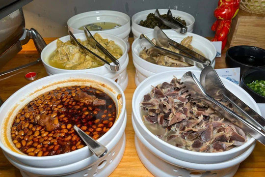 早餐品种相当丰富,以中式菜品为主,辅以面包蛋糕等西式点心,也有不少本地特色的现做面食,我就来了一碗地道的德清鸭脚面,汤头是真的够鲜,自己再加一点卤猪手等浇头,实在太满足!