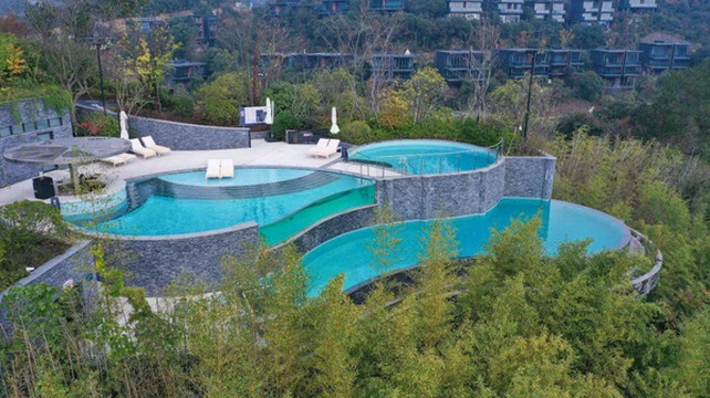 在来郡安里前,我就知道这里有一个露天恒温泳池,可以满足客人一年四季畅游的需求,这在整个莫干山可能都是绝无仅有的。于是,用完下午茶,我们迫不及待地决定去玩个畅快!