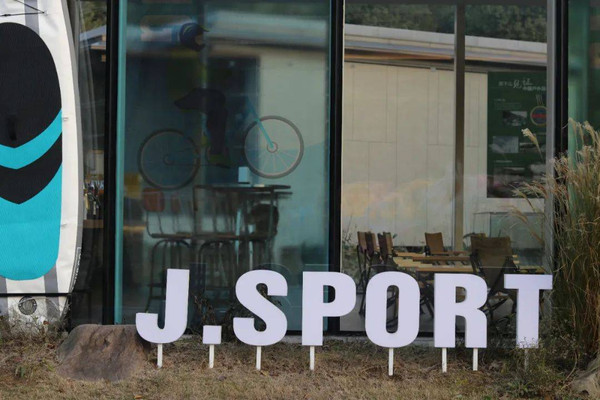 草坪旁一间标着J.Sport的玻璃屋吸引了我,走进一看,原是一个为运动迷们准备的共享交流空间。