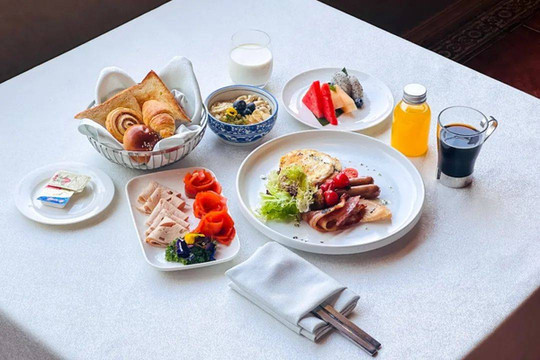 又是一夜甜梦。今天的早餐我们换一种方式:Room Service。郡安里全新推出的早餐送餐服务有中式、西式、儿童三种套餐以及多种自选单品。我们三人,自然就是三个套餐各来其一啦!