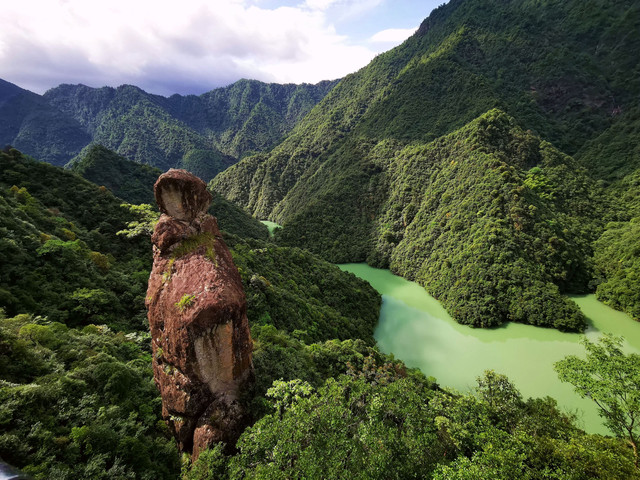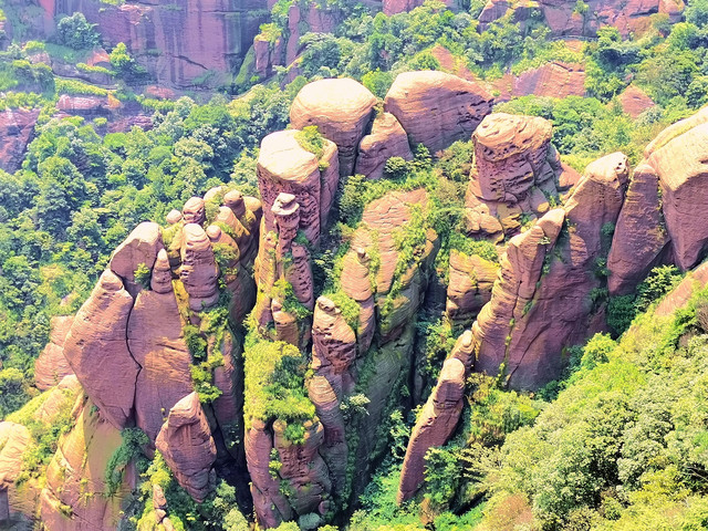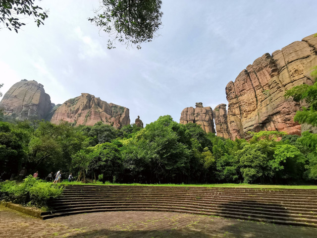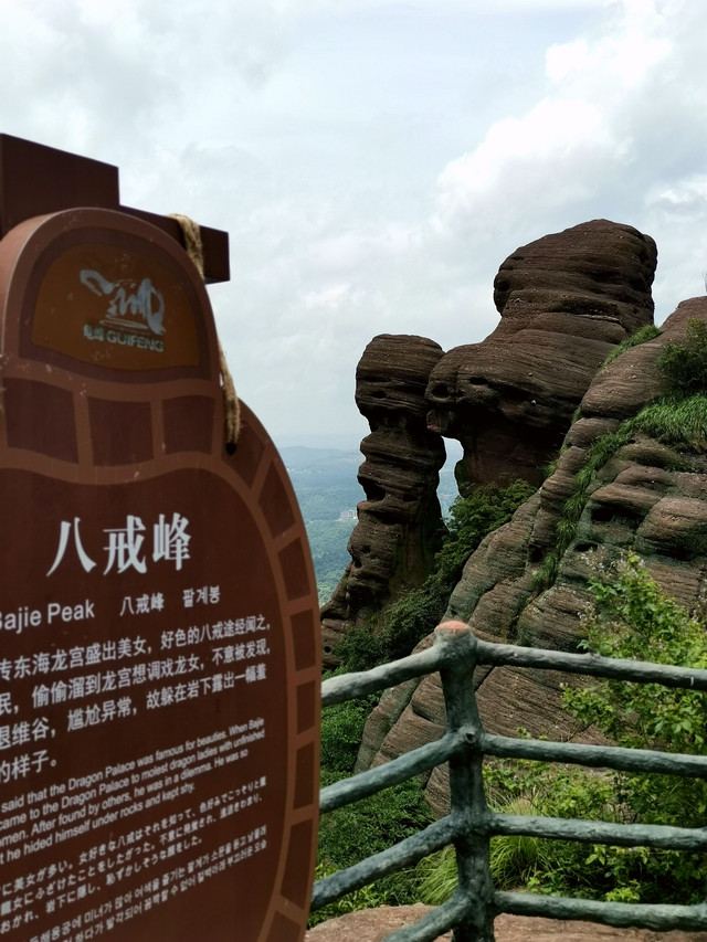 开车一小时不到,九点多到达了弋阳县的龟峰景区。龟峰风景名胜区位于江西省弋阳县城区西南部,是世界地质公园龙虎山—龟峰地质公园和世界自然遗产“中国丹霞”的组成部分,是国家级风景名胜区、国家AAAAA级旅游景区。龟峰因景区内有无数形态酷似乌龟的象形石和整个景区远远看去象一只硕大无朋的巨龟而得名。以其独特的“无山不龟,无石不龟”的自然景观让人叹为观止,也是我们此行程带给我们最大惊喜的景点。