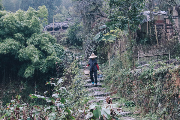 走进岩泉,第一印象就是走进了大自然。我们去的那天刚好在下小雨,行走在烟雨朦胧中,远远可以望见低矮的小房屋,屋里堆放着村民的柴火,走几步还能遇到村民,亲切的和他们问个好,然后继续赶路。