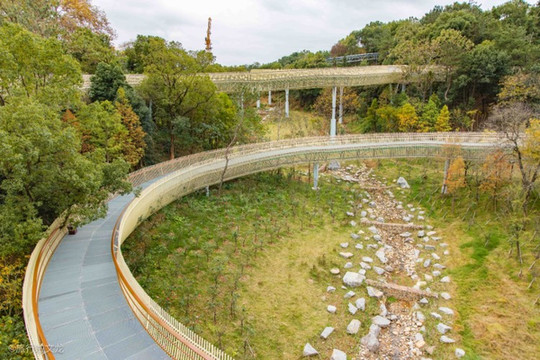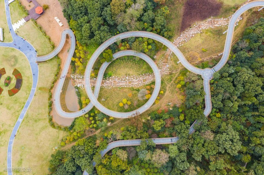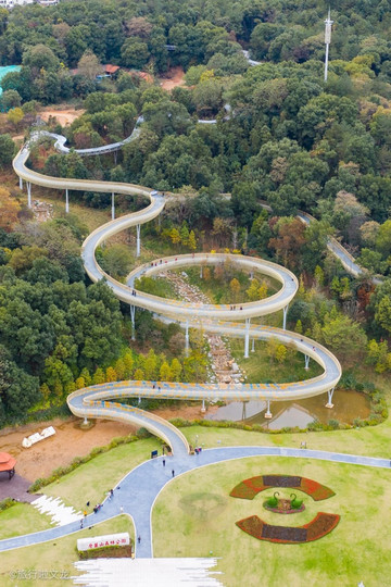 磨盘山是 江西 唯一的一处钢架镂空的步道独具特色,镂空的步道让我立即升起无人机,记录这个步道的壮观景象,步道一层层的蜿蜒曲折向上在森林中翠滴群峰,十分的壮观,在这样一个钢架镂空设计的步道上行走,不仅能锻炼身体还能看到周围的美景。