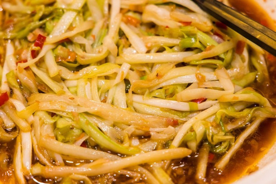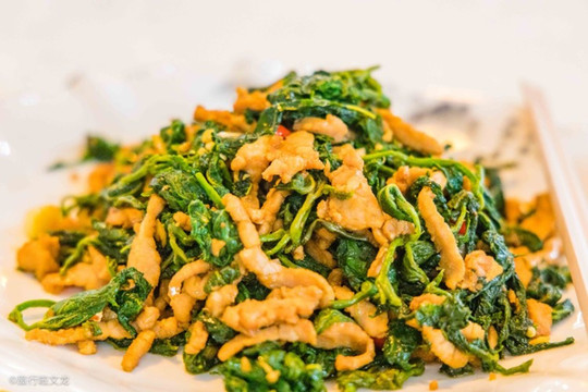 桑叶炒肉丝是最为常见的家常菜,油而不腻,口感极佳。