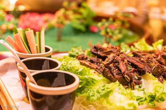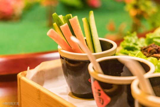 最有吃法的美食还得是这里的烤鸭,烤鸭的味道不输于正宗的 北京 烤鸭,旁边还有一些小料让我们去添加自己想吃的口味。最离不开的便是辣味的点缀,在小料的添加下,所有的料都进入烤鸭里,入口满是料香和肉香,很有嚼劲且肉烤的刚刚好,不老也不嫩。
