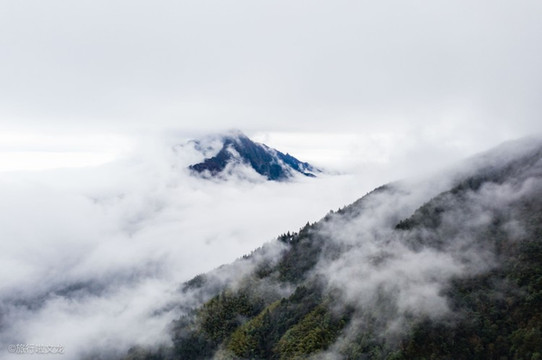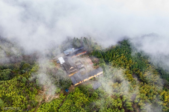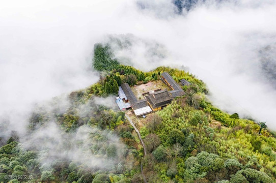 踏入武功山就犹如踏入仙境,山间云雾缭绕,山顶又有一处复古房子的存在,犹如仙人所居住的地方,四周也是树木繁多,群山连绵。云雾挡住了群山与树木的面貌,误闯仙境,探仙境之美景。