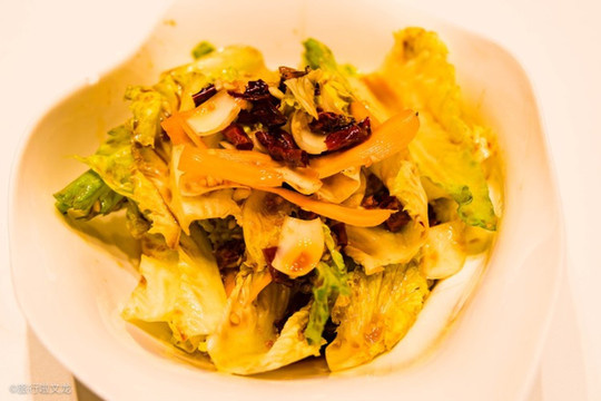 沙拉炝拌有机生菜,开始还以为是炒熟,原来生的拦起来也刚刚好,吃起来酸爽,且生菜也很有营养。