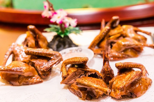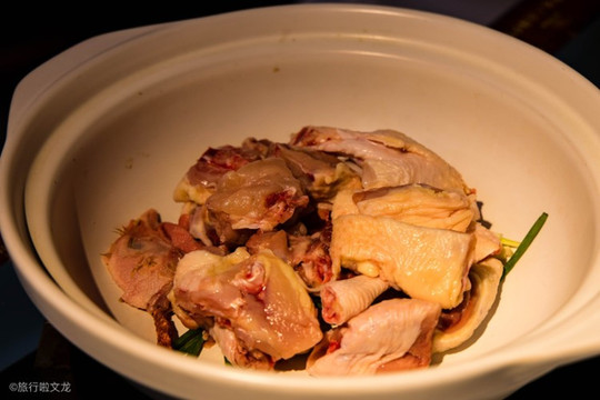 是我在抚州的山翁别院吃的,我们吃过很多鸡,但这只鸡足够特别,远看一整只鸡,当你一动这只鸡又发现它是分开的,这只鸡由厨师撕开后,上菜时又组成了一只鸡的样子,配的调料有近十种,鸡的味道香醇,口感外酥里柔。
