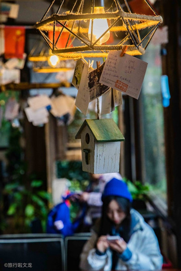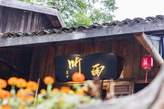 木头建造的房子已经有了年轮的痕迹,我也亲身的感受到了品茶的享受,在茶社听雨阁里看着精美的茶具,品着茶,在这休息期间欣赏着其中的美景,十分的惬意。幽静的森林,客栈的依山而建,在房间品尝享受生活,望着窗外的景色,一处皆是一景。