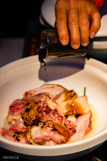 在这里可以看到最著名的三杯鸡师傅制作的全部的过程,所选用的鸡都是纯天然的。恰到有度的米酒一杯、猪油一杯、酱油一杯依次加入,让其与鸡块混合中,让我们可以学习一把制作这道菜的全部过程。