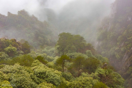 山峰间云雾缭绕,群山重岩叠嶂,怪石百出,有重云海幻境的错觉。
