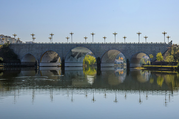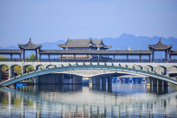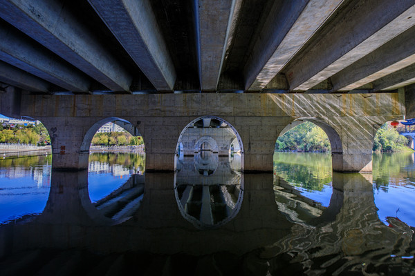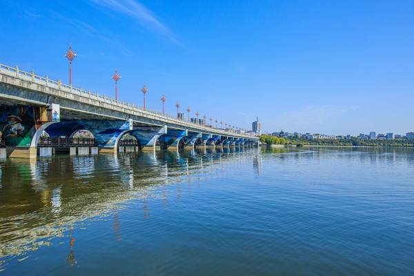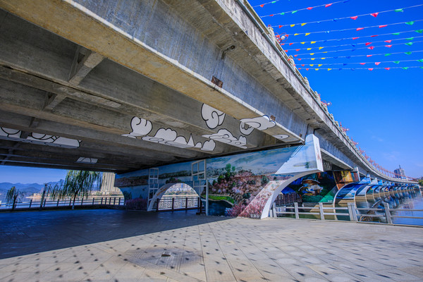 “城在水中,人在画中”,正所谓“四季风光呈山水,一桥美景话武宁”,桥中桥景区将武宁“两山夹一水”的大山水文化格局作为背景,以修河为主线,通过艺术墙绘手段,对18个桥墩的立面、侧面、拱形面,桥头两侧,共1.2万平方米进行装饰,绘制了132幅壁画,浓墨重彩地表现武宁优美的湖光山色和独特的历史人文,打造了一个梦幻般的“山水武宁”时空隧道、旅游文化长廊。
