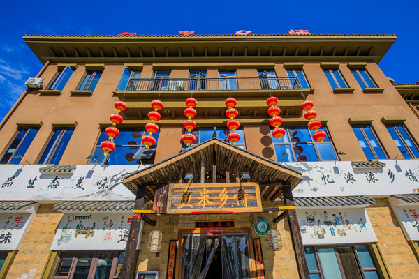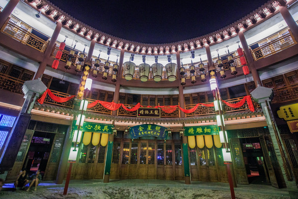 往前走就是仿古回廊,圆形木石结构,民俗气息迎面而来