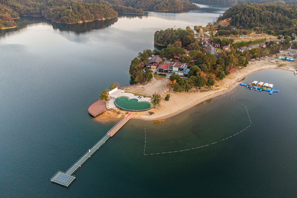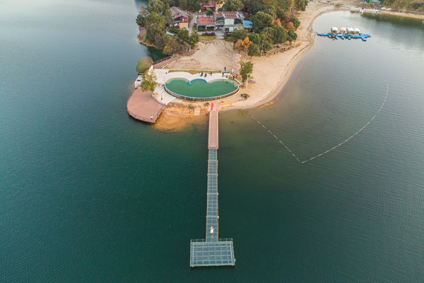景区精心打造的“马尔代夫”度假岛金沙滩就在一个四面环水的小岛上,湖水清澈而冰爽,达到国家I类标准。“小岛度假村”的形式让人觉得新鲜,在这喧闹的城市中这种小岛并不多见,小岛上除了一些花草树木、沙滩、小木屋、餐厅兼活动室就没有其他多余的东西,保留着天然景观,就像是有自己的一片小天地。