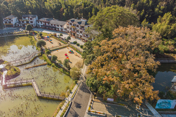 来到长水村,走过的每一处,都可以看见流水潺潺,四周峰峦秀丽,古木参天,一排装修一新古香古色的山庄民宿掩荫其中,偶尔听见鸡鸣狗吠,让人充分感受到什么是“现世安稳,岁月静好”。