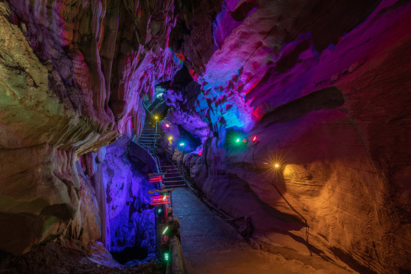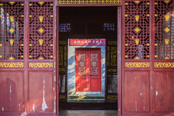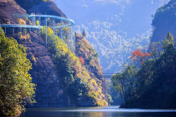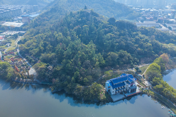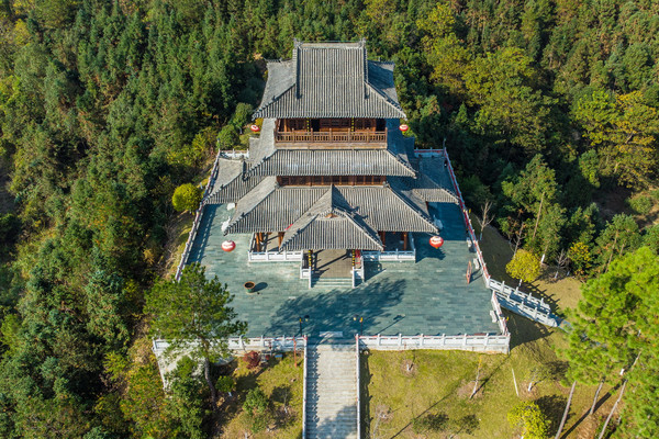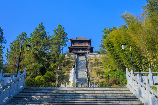 石钟山山上游廊迥转,亭楼相接、曲径通幽,引人入胜。