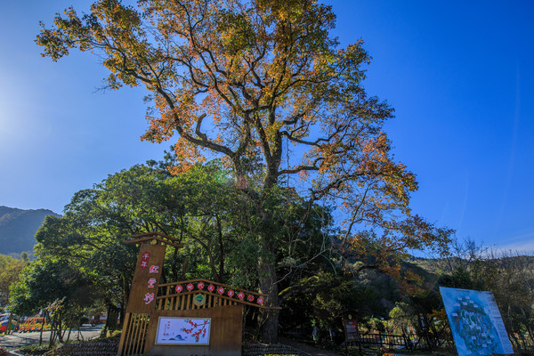 漫步在村旁的千年红豆杉古树群中,与红豆杉合影打卡留念,尽情地深呼吸,被这清新的空气所陶醉。