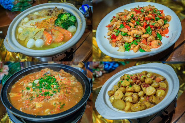 从演艺广场向北走,就到了柘林老镇最出名的——仙子路美食街。来了老镇,一得拍照打卡,二当然就是必不可少的美食了,天南海北的地方小吃特产在此齐聚。其中商家们还会身着特色服饰招揽顾客