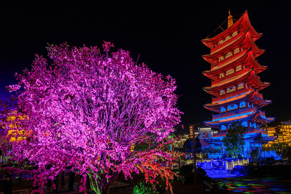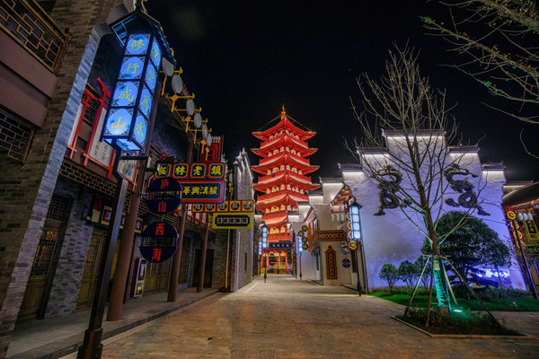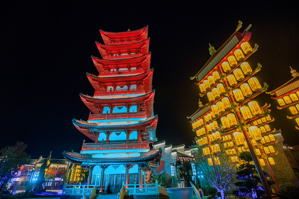老镇从北门进入,一进园引入眼帘的就是柘林老镇的标志性建筑——柘林宝塔。不断变换着色彩的宝塔四面七层,总高43.38米,在风水学中代表着“财吉”,它不仅代表柘林人民对美满幸福生活的祈愿,更是对每一位来到柘林老镇的友人们最真挚的祝福。