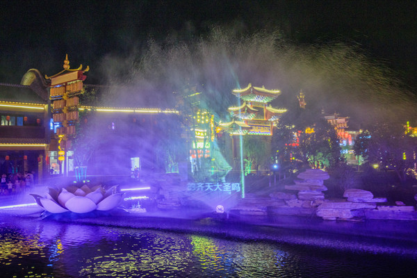 往西走,演艺广场不仅在夜晚是人群集聚观赏表演的绝佳位置,在白天,也是孩子们最喜欢的地点之一。